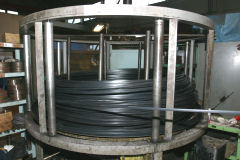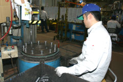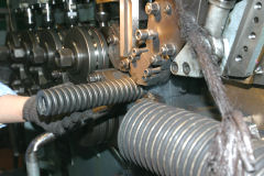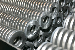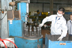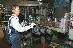 | 由SWIFT與“新日鐵”共同研製的鋼材原料,加添了東京發條所的獨門技術,製作出高品質、耐衰退性的彈性鋼材。 | 生產過程是將原材料製作成大量的鋼條,再進入鑄模機內加工。 |